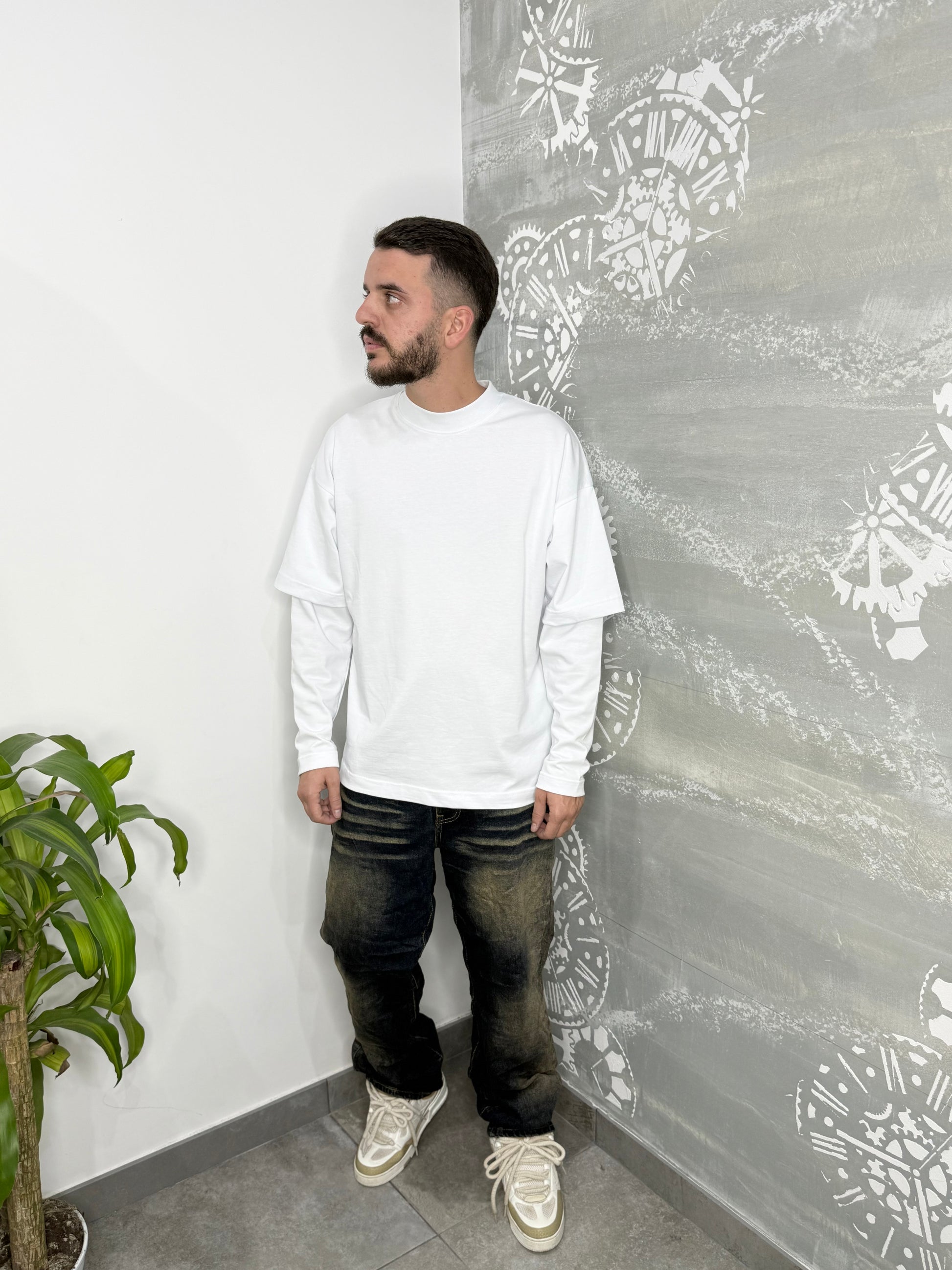 Il modello indossa una Tg 44 ed è alto 1,75Mt X 65Kg.