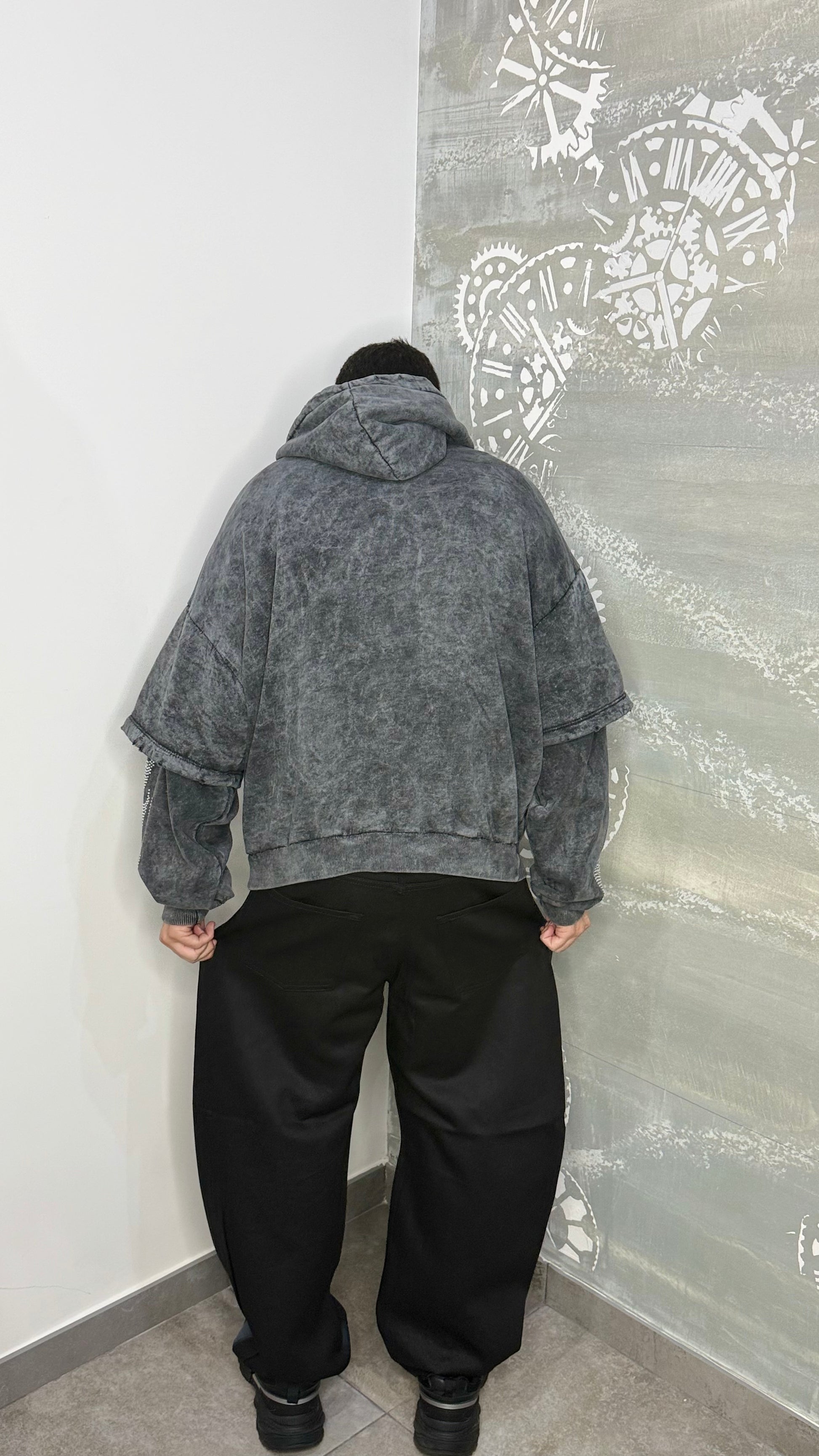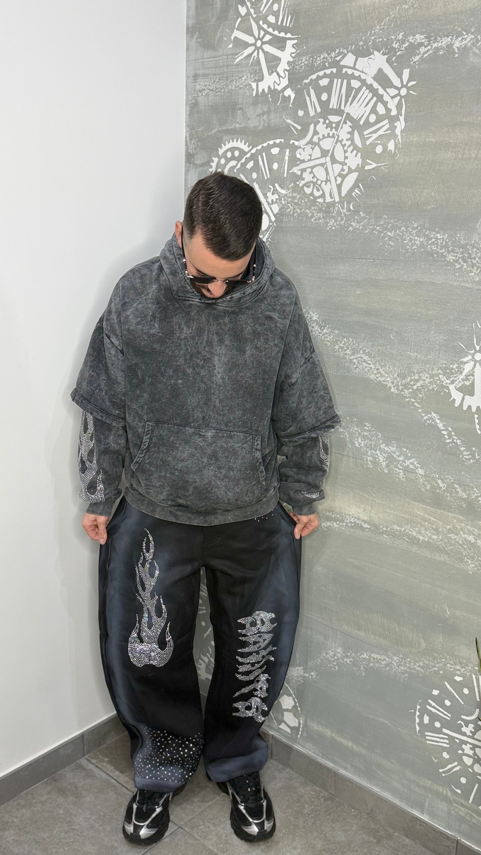 Il modello indossa una Tg 44 ed é alto 1,75Mt X 65Kg.