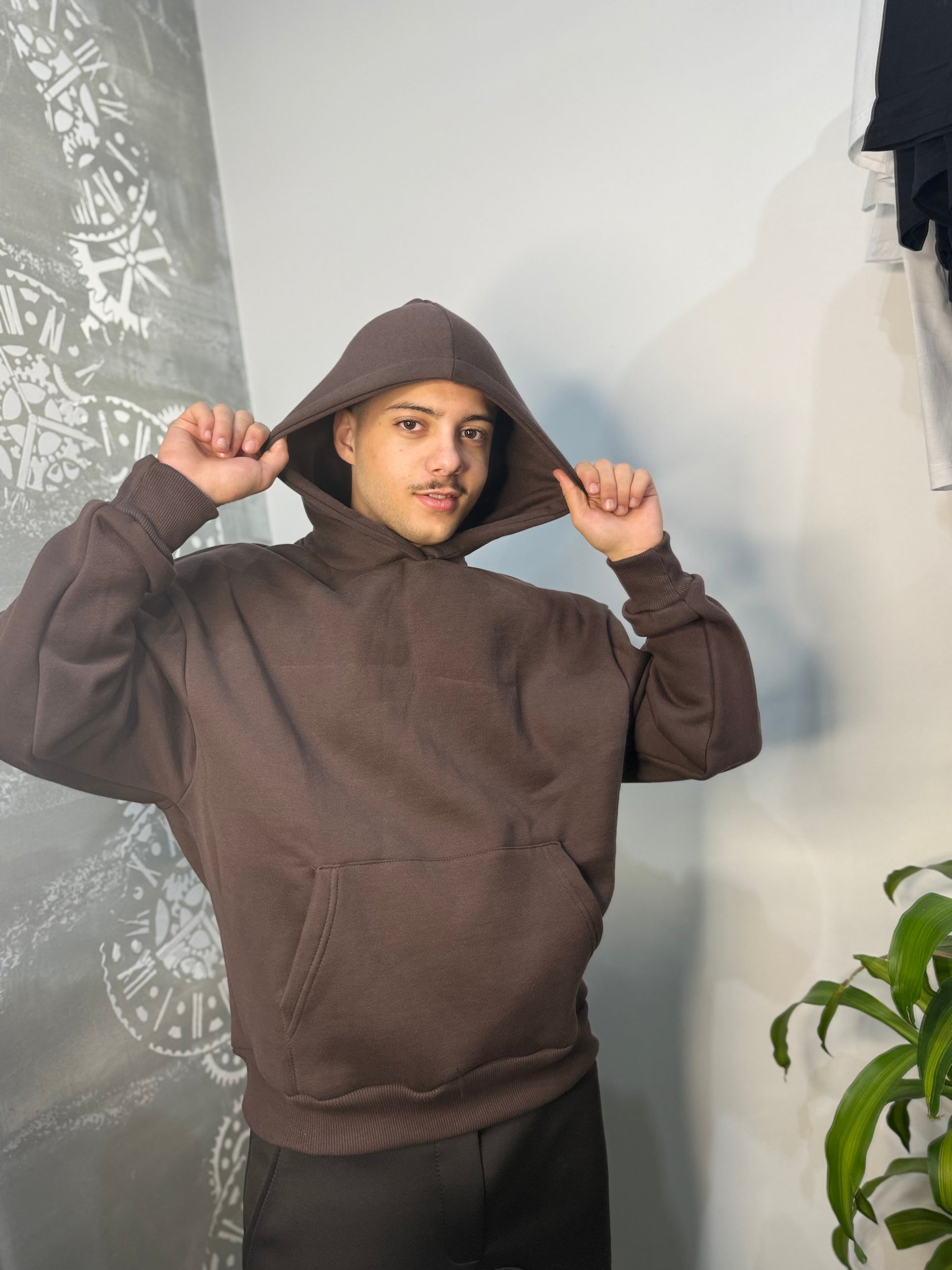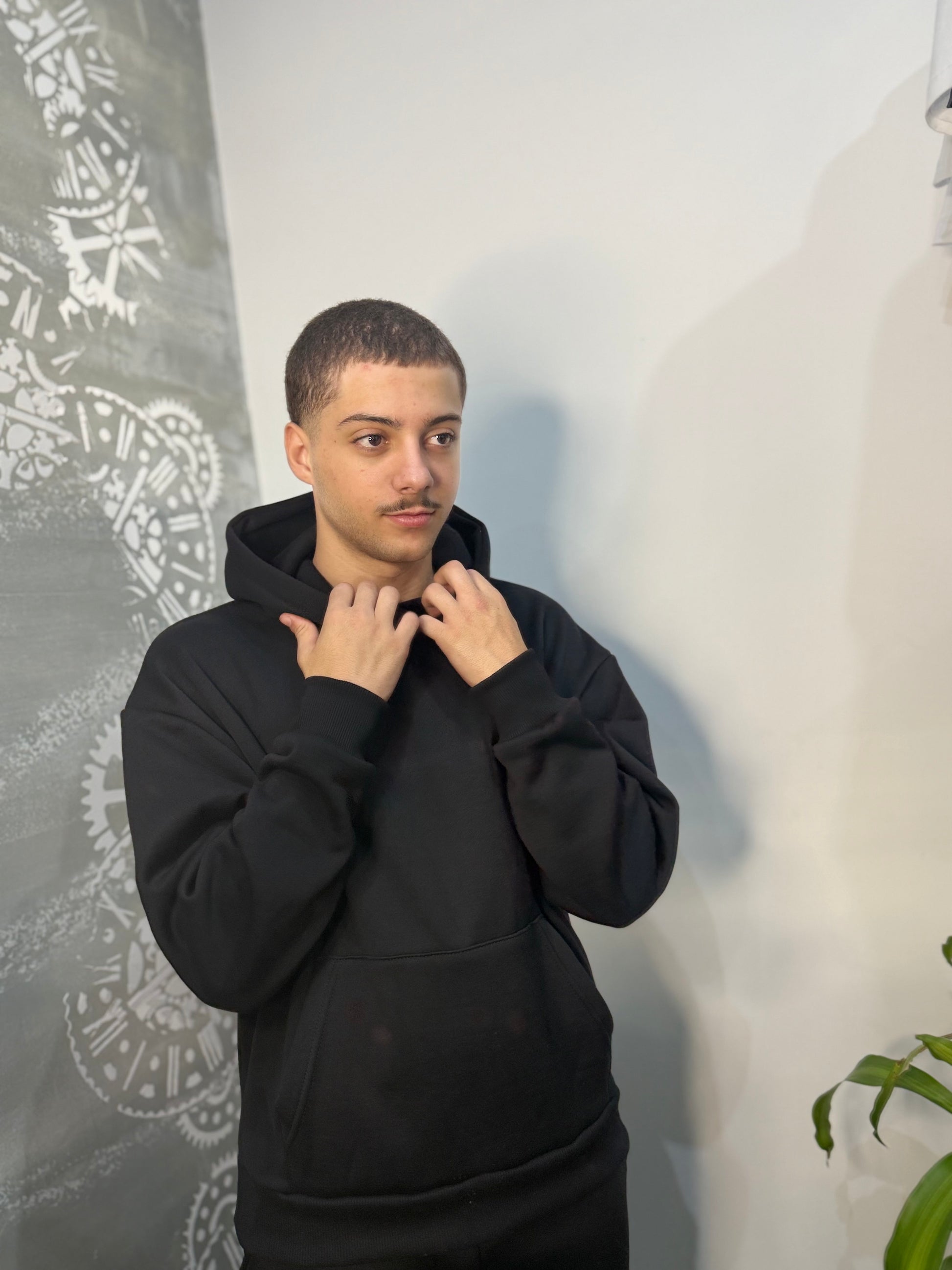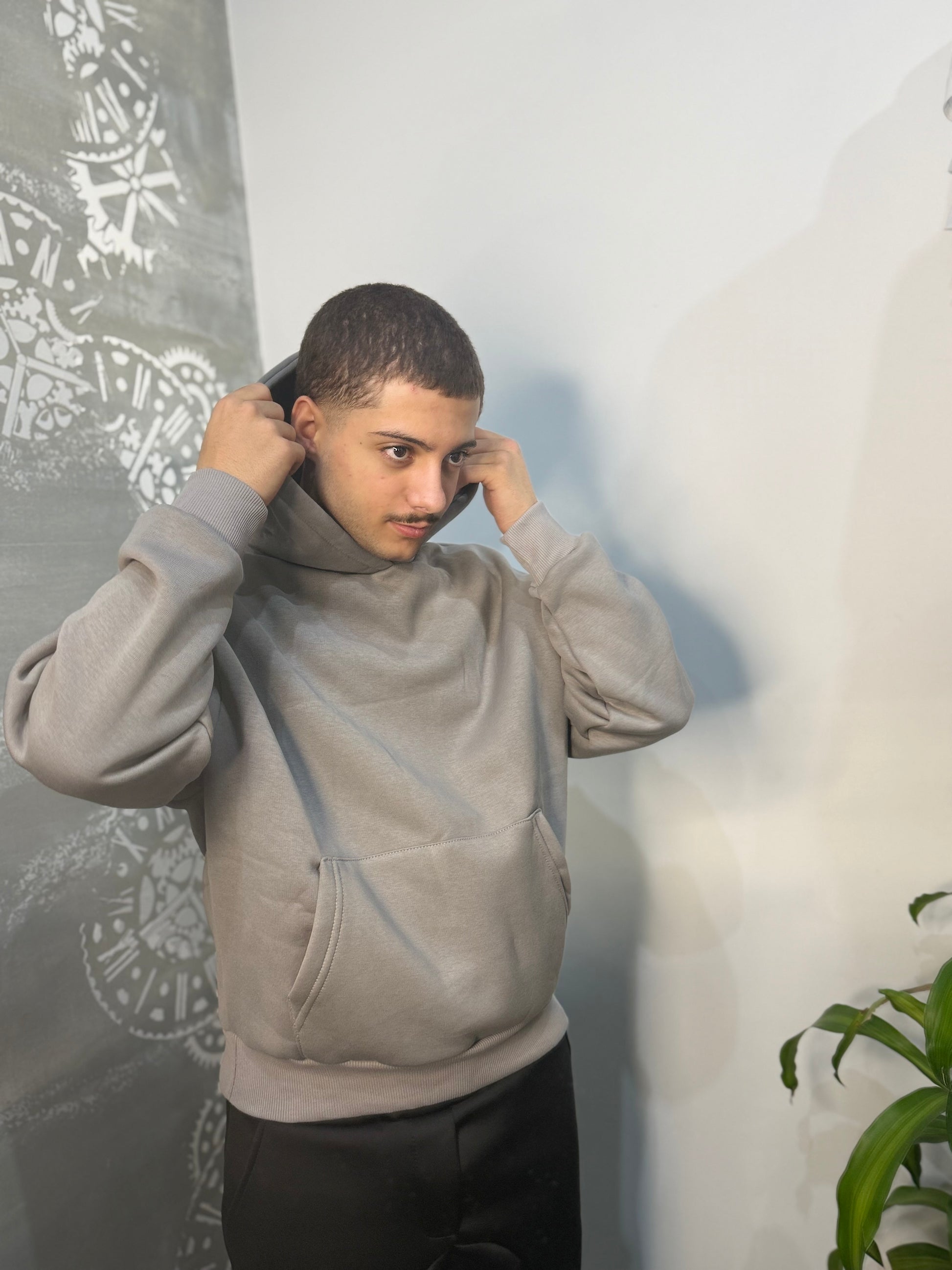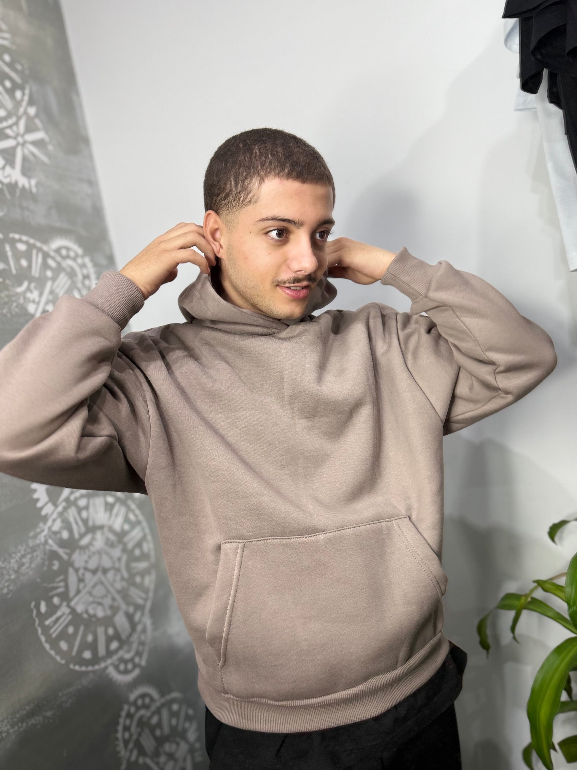 Felpa con ribattiture sulla balza, sulla manica e sul cappuccio, tasche frontali.