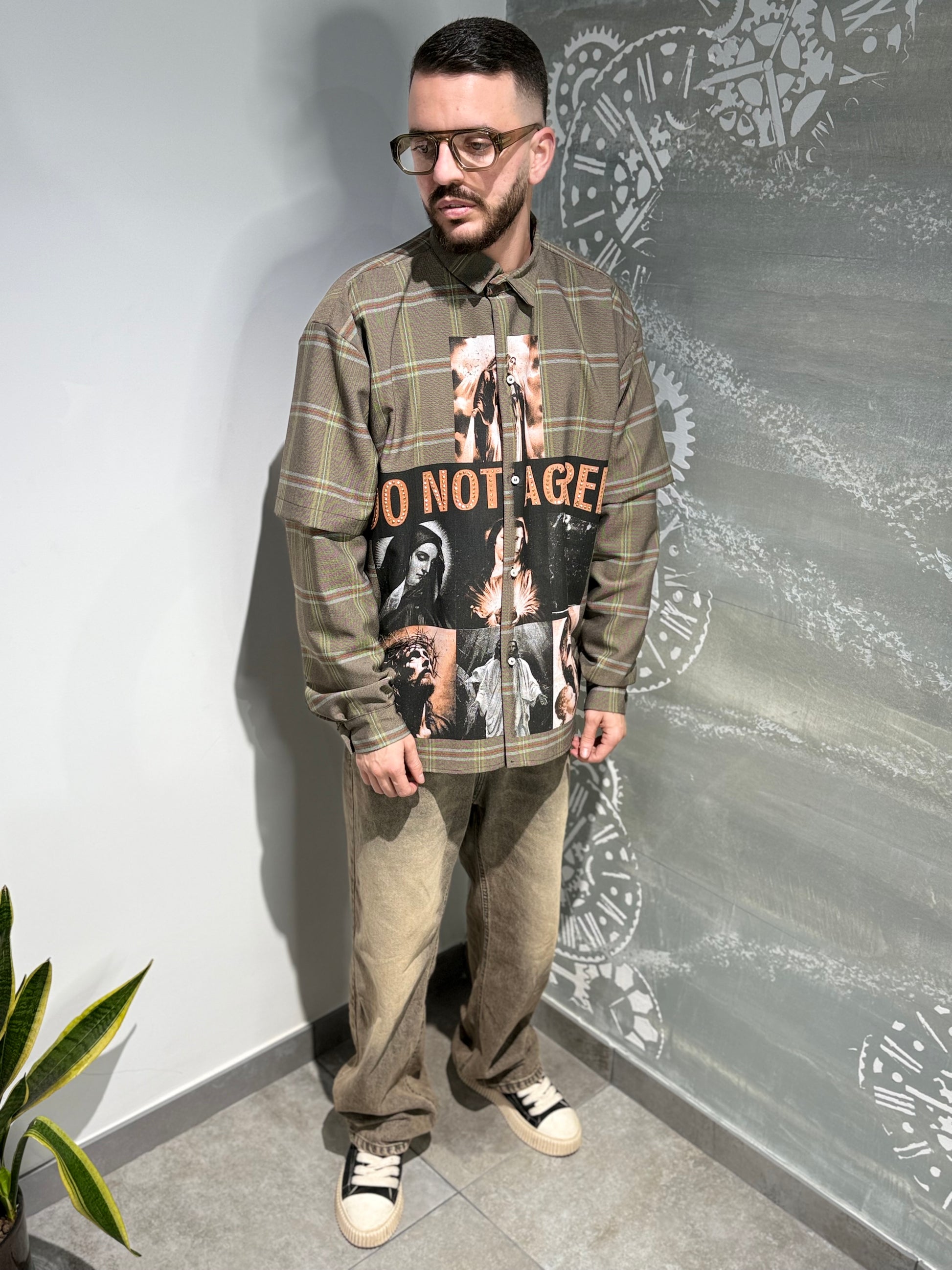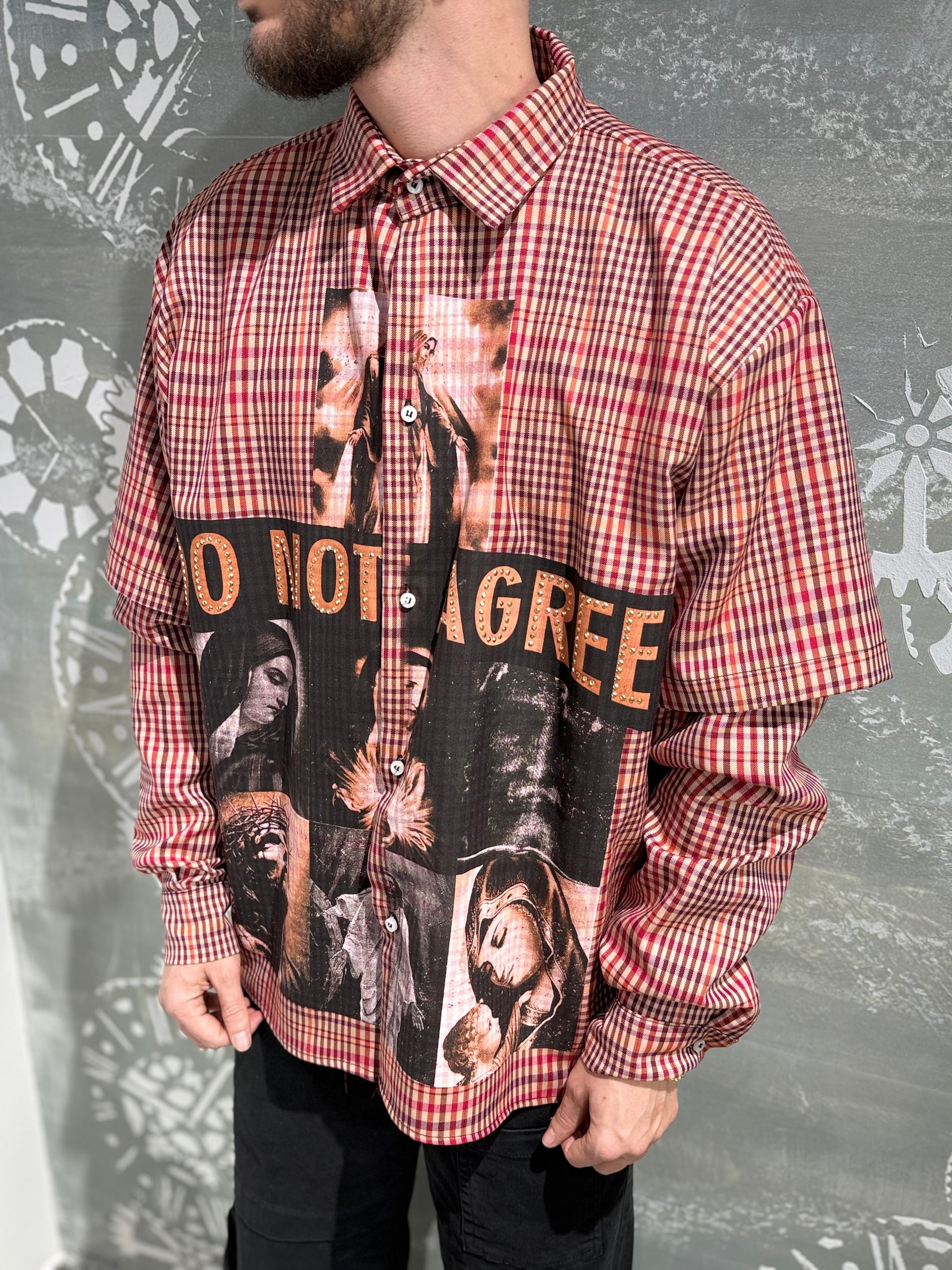 Camicia doppia manica con scritta brillantinata.