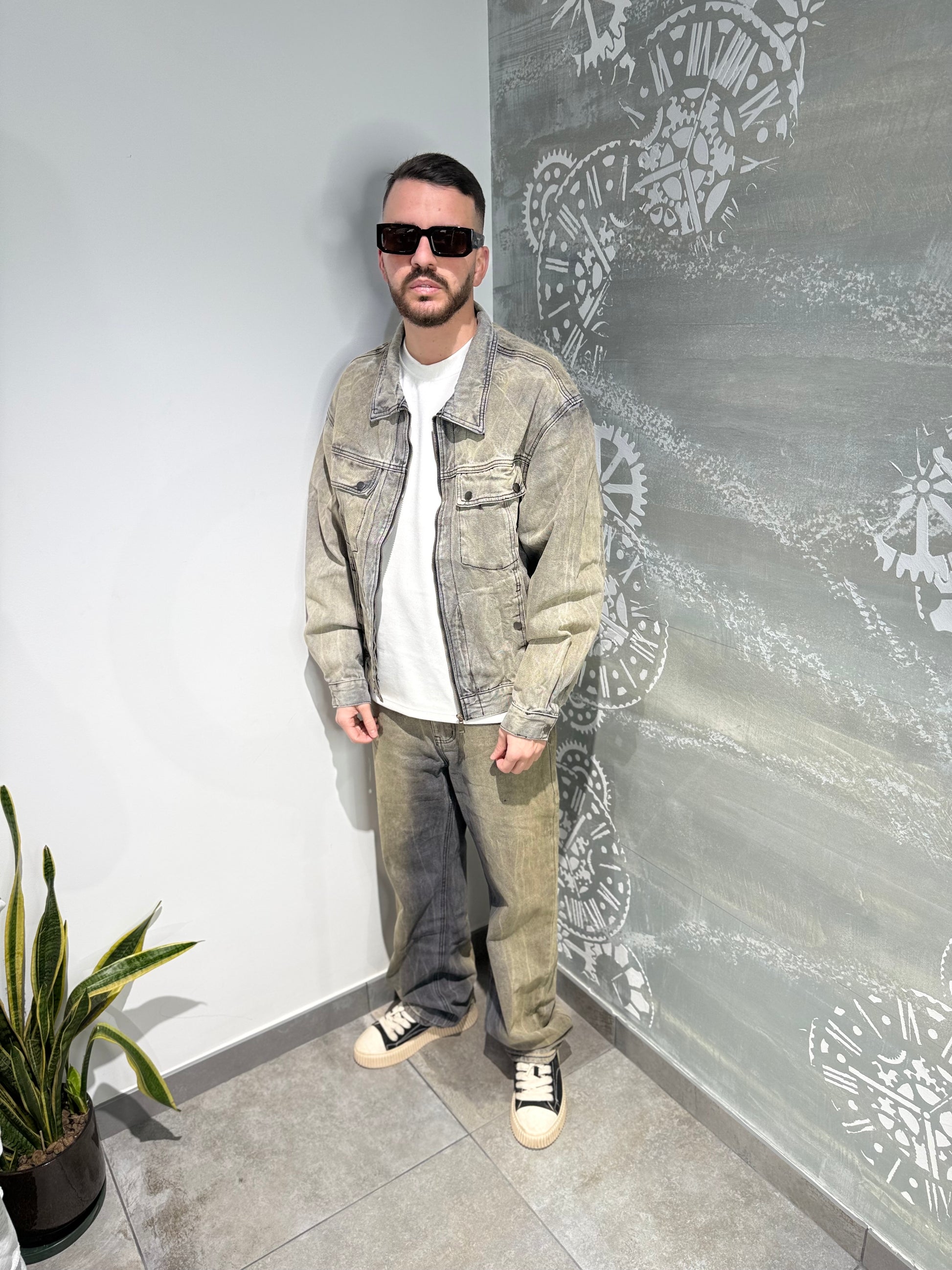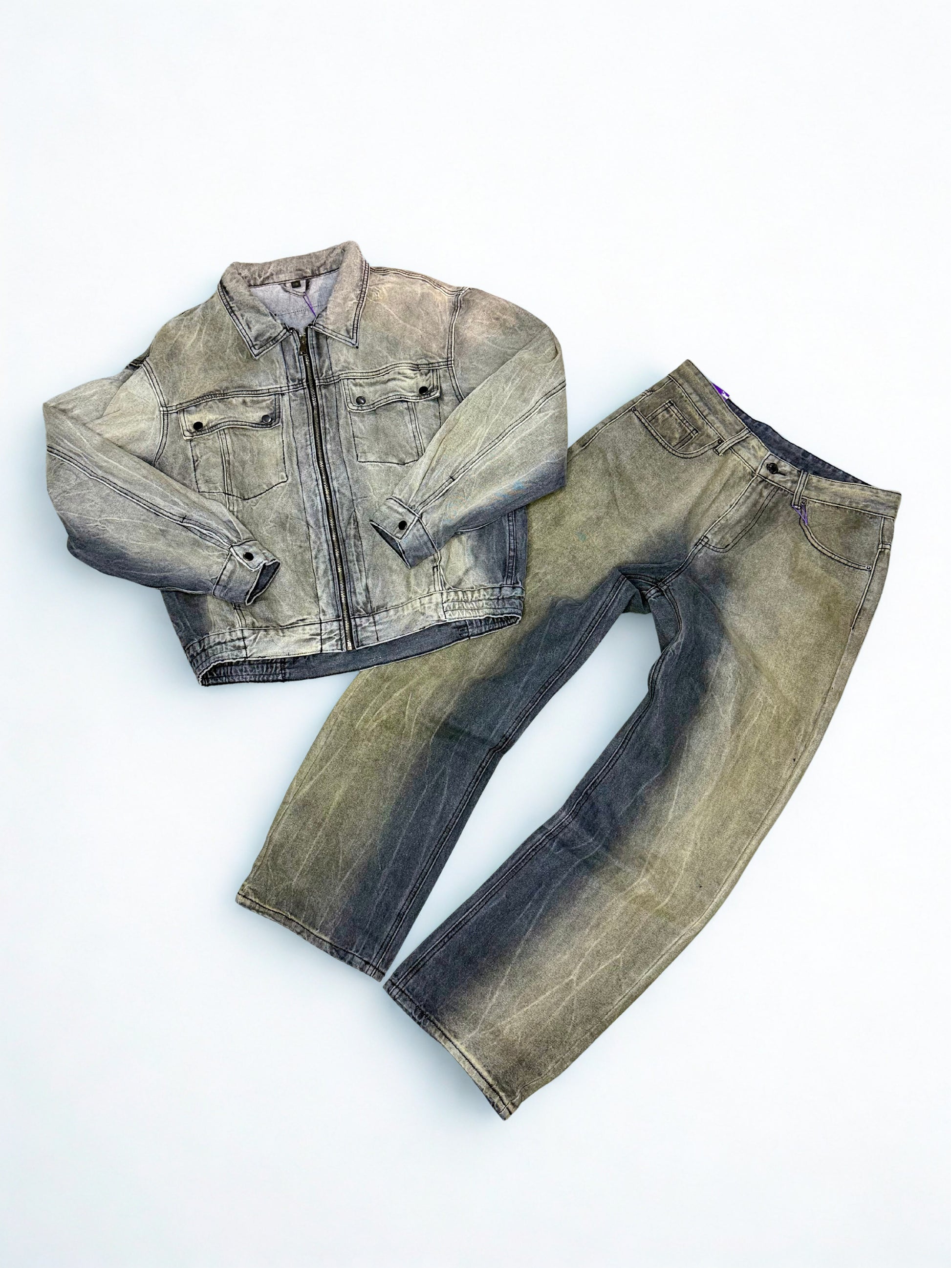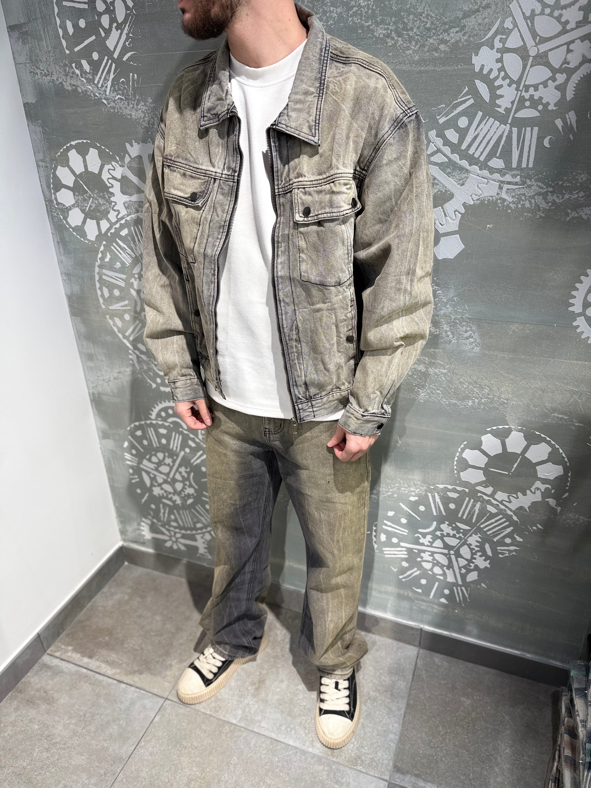 Cordinato 100% cotone con giacca chiusura con zip e molla sul fondo e jeans con passanti in vita e fondo comodo.