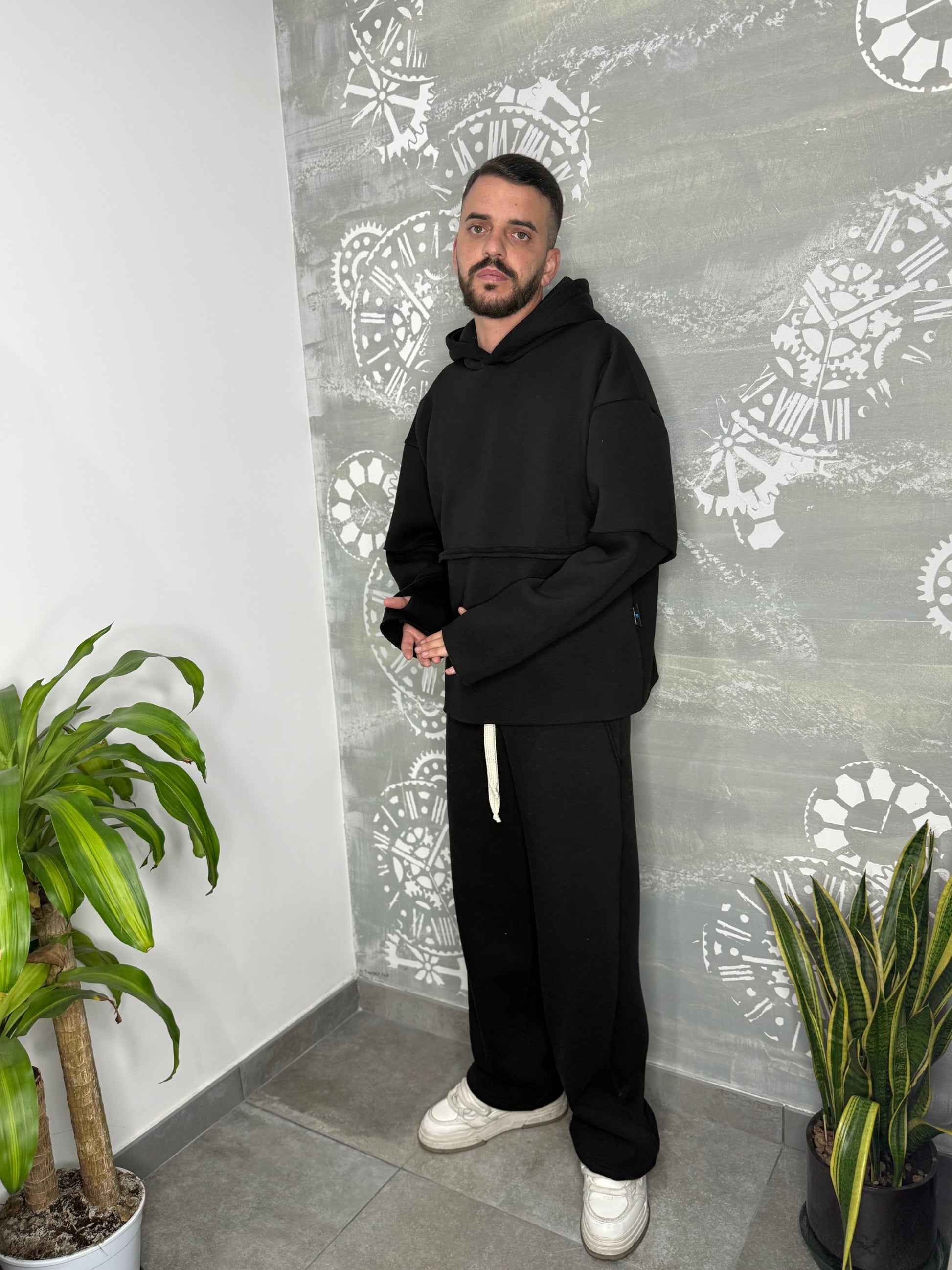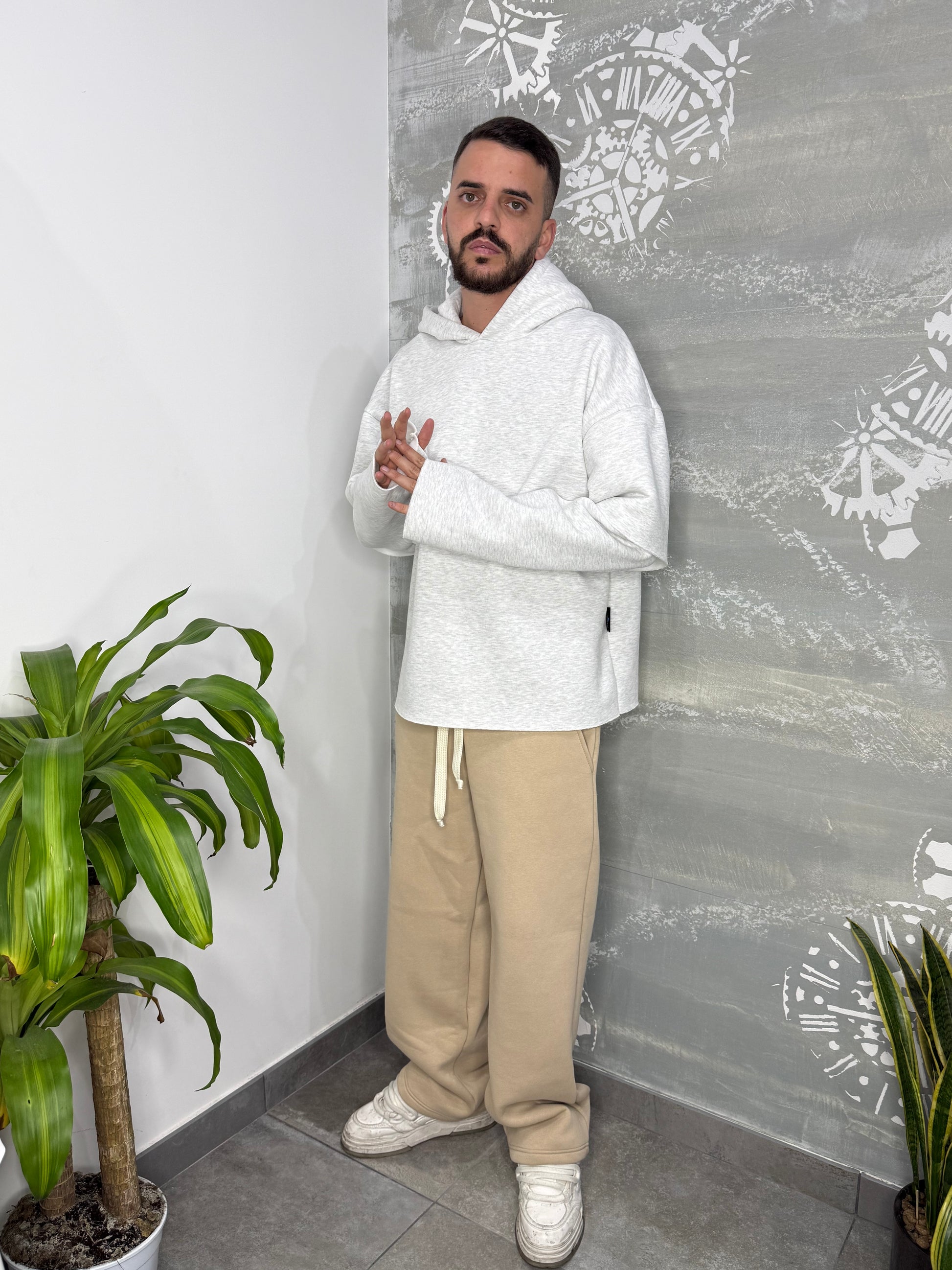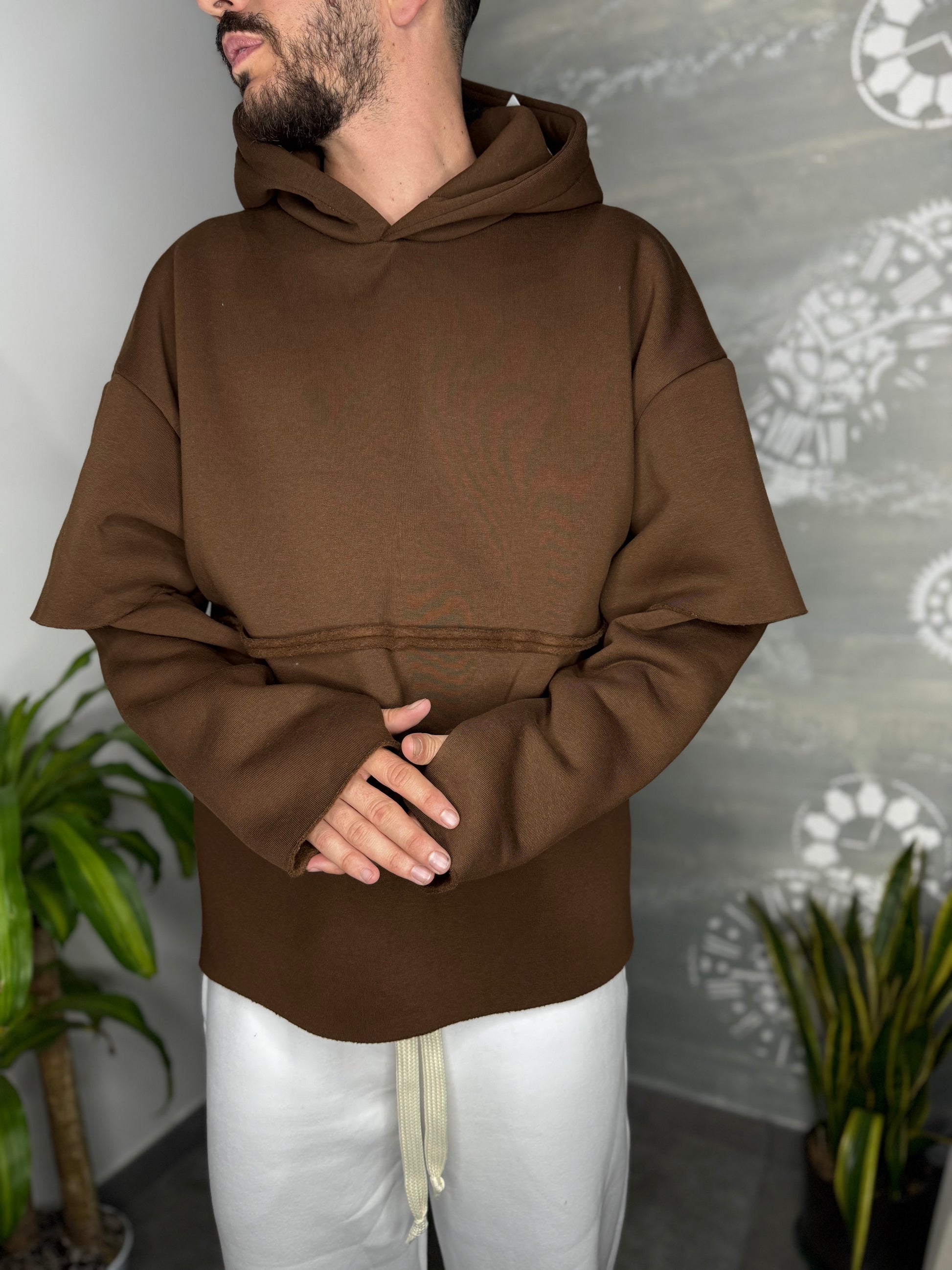 Felpa con cappuccio, manica a guanto e cappuccio.