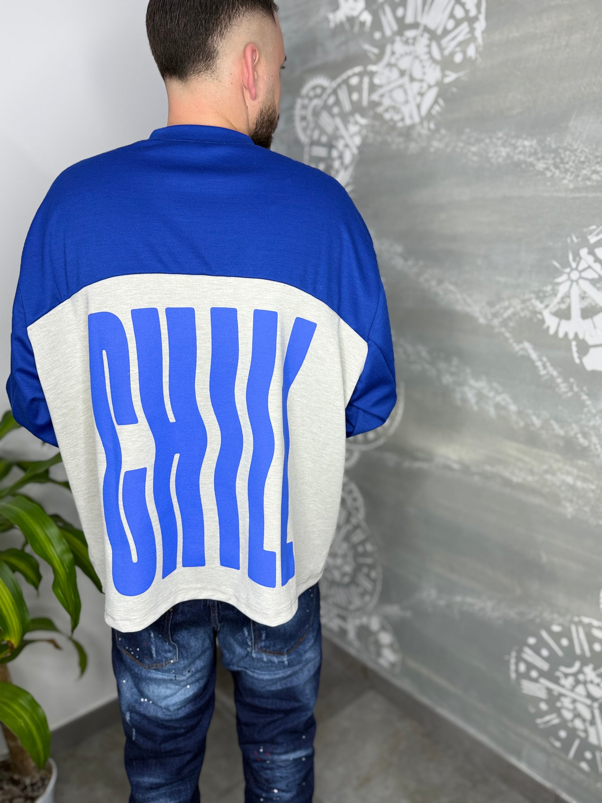 Shirt macniche lunghe bicolore con polsino sulle maniche, stampa sul retro.