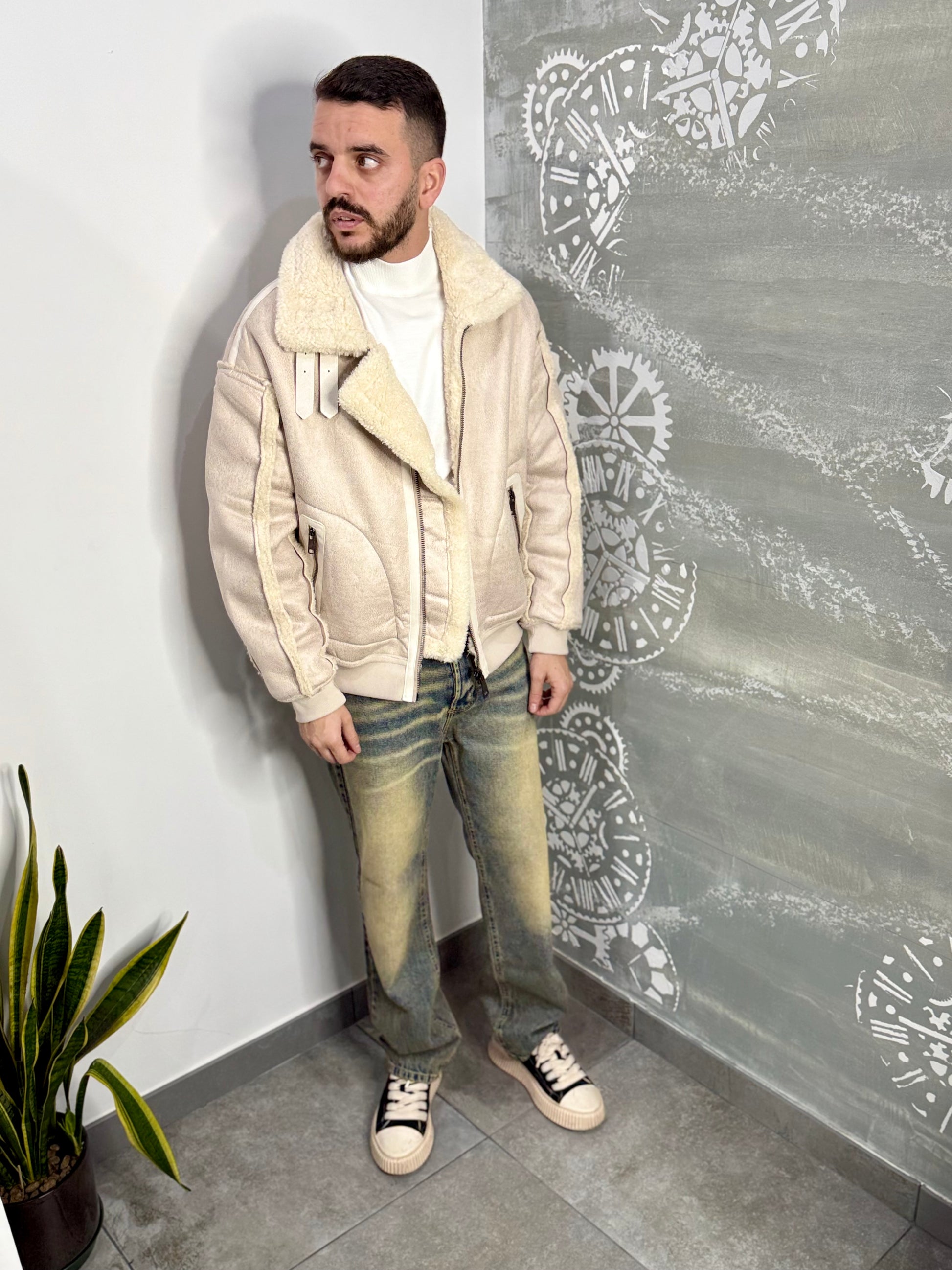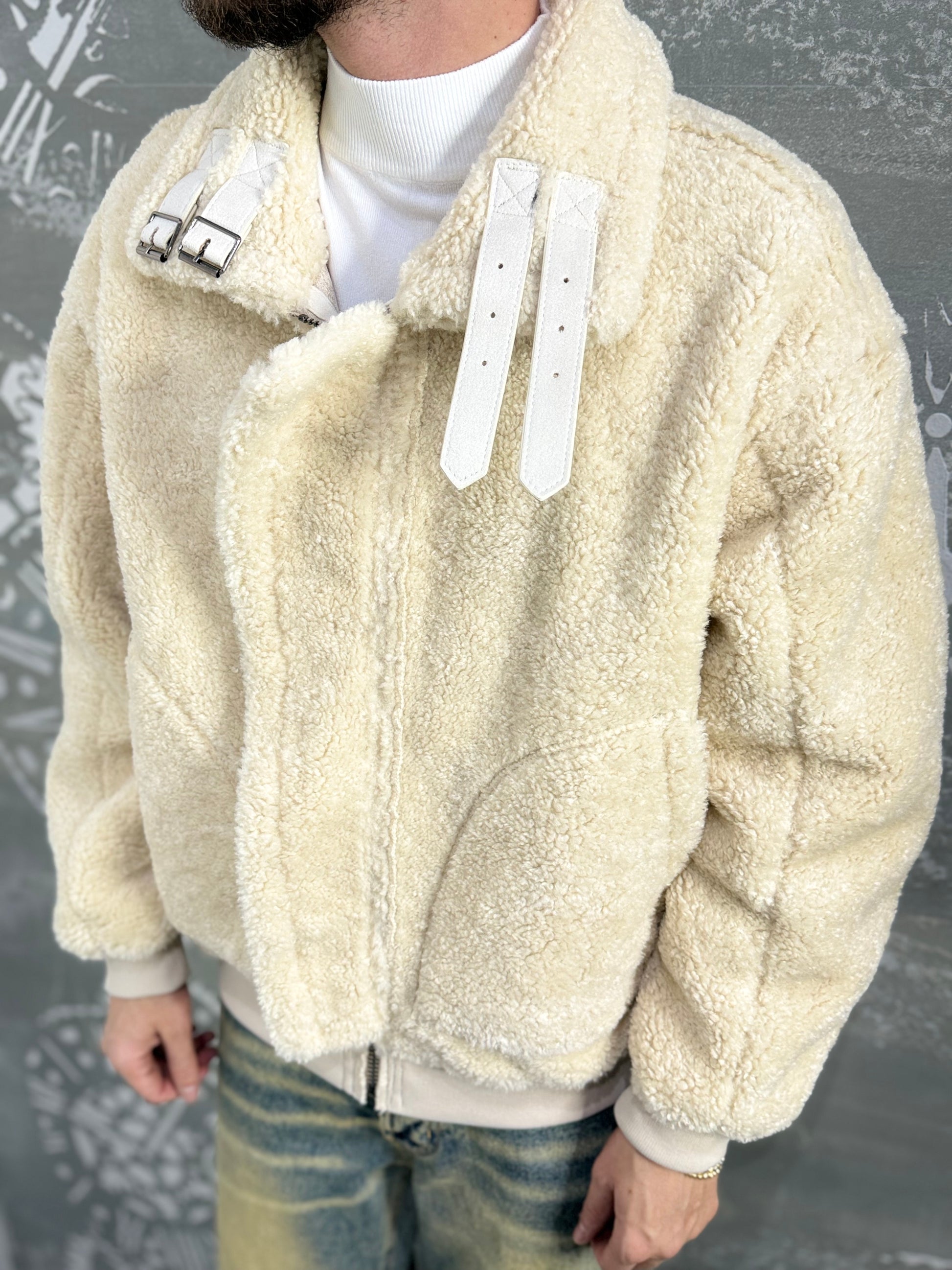 Montone reversibile, ecopelle da un lato e interamente teddy dall’altro.