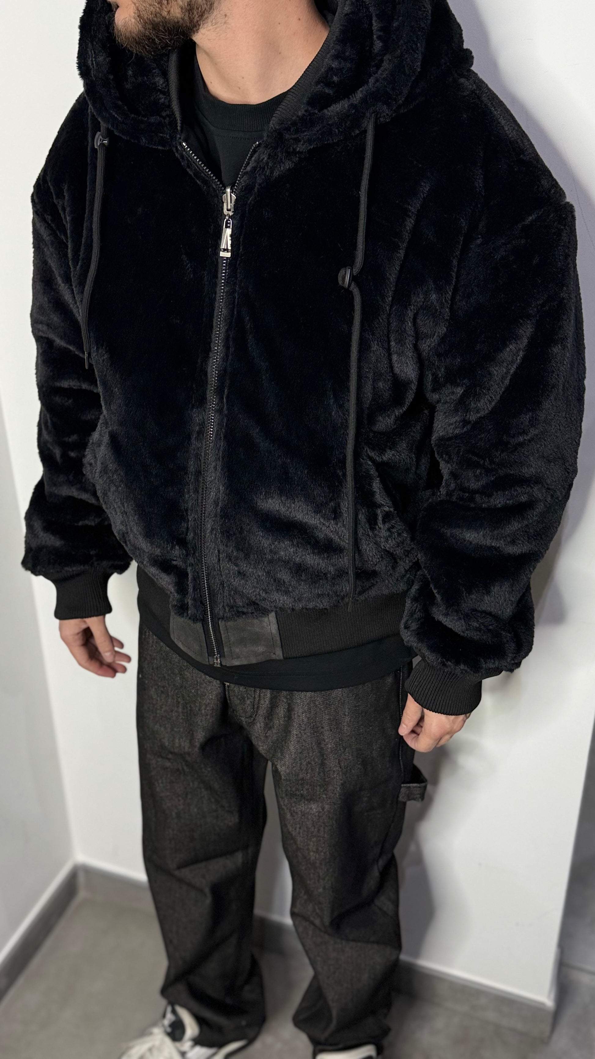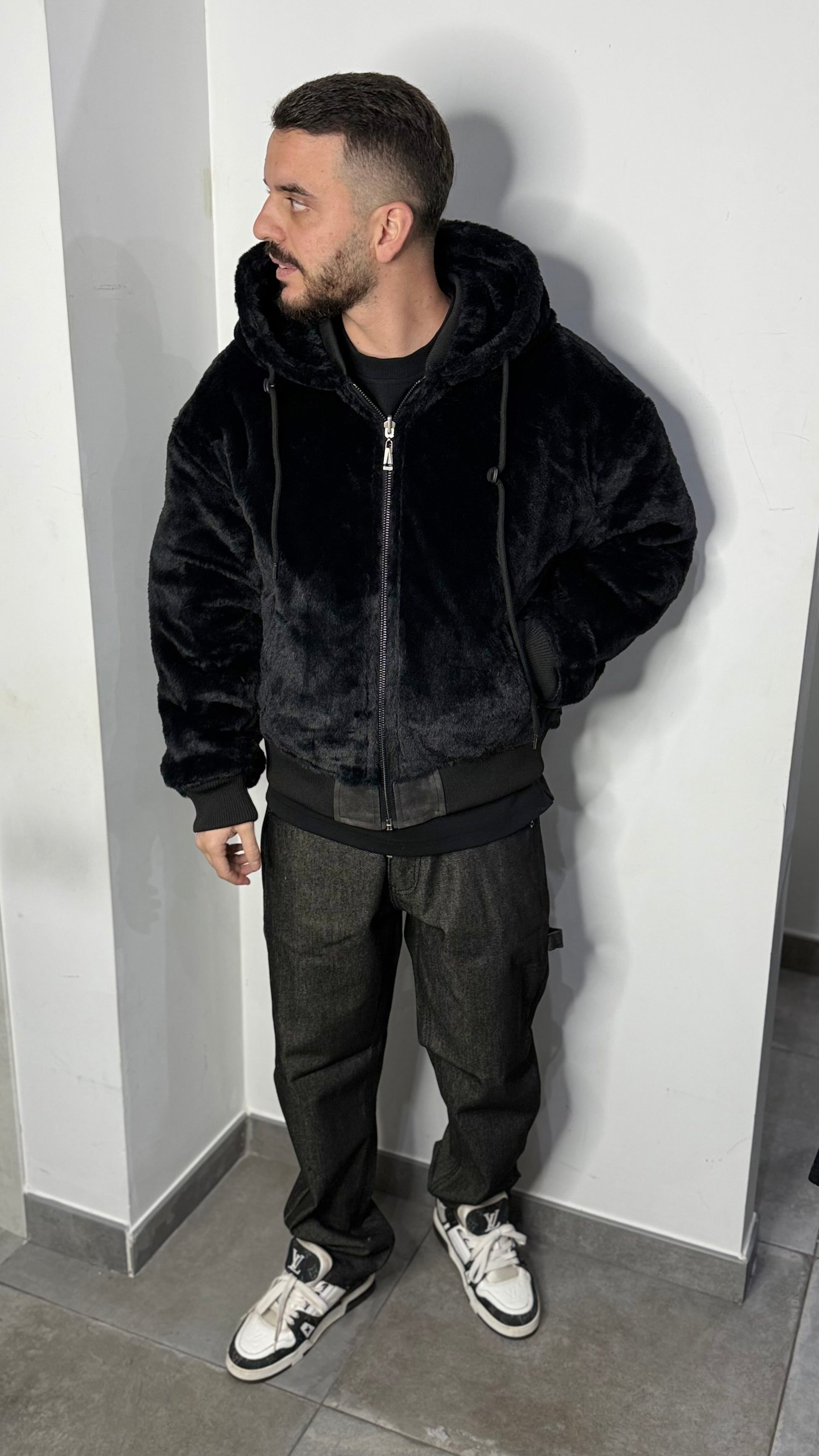 Montone da una parte ecopelle e dall’altro lato pellicciotto; due giubbini in uno.