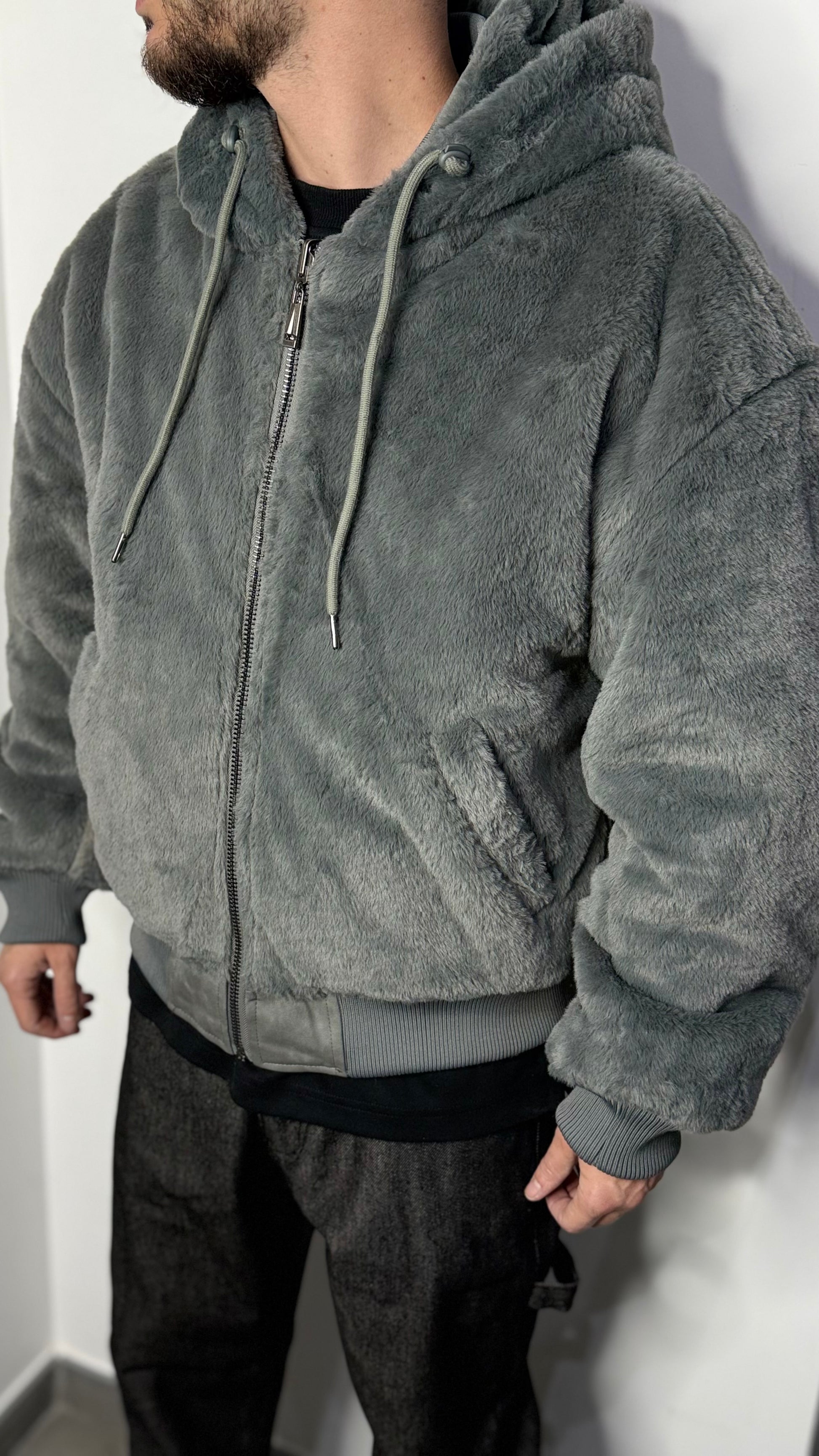 Montone da una parte ecopelle e dall’altro lato pellicciotto; due giubbini in uno.