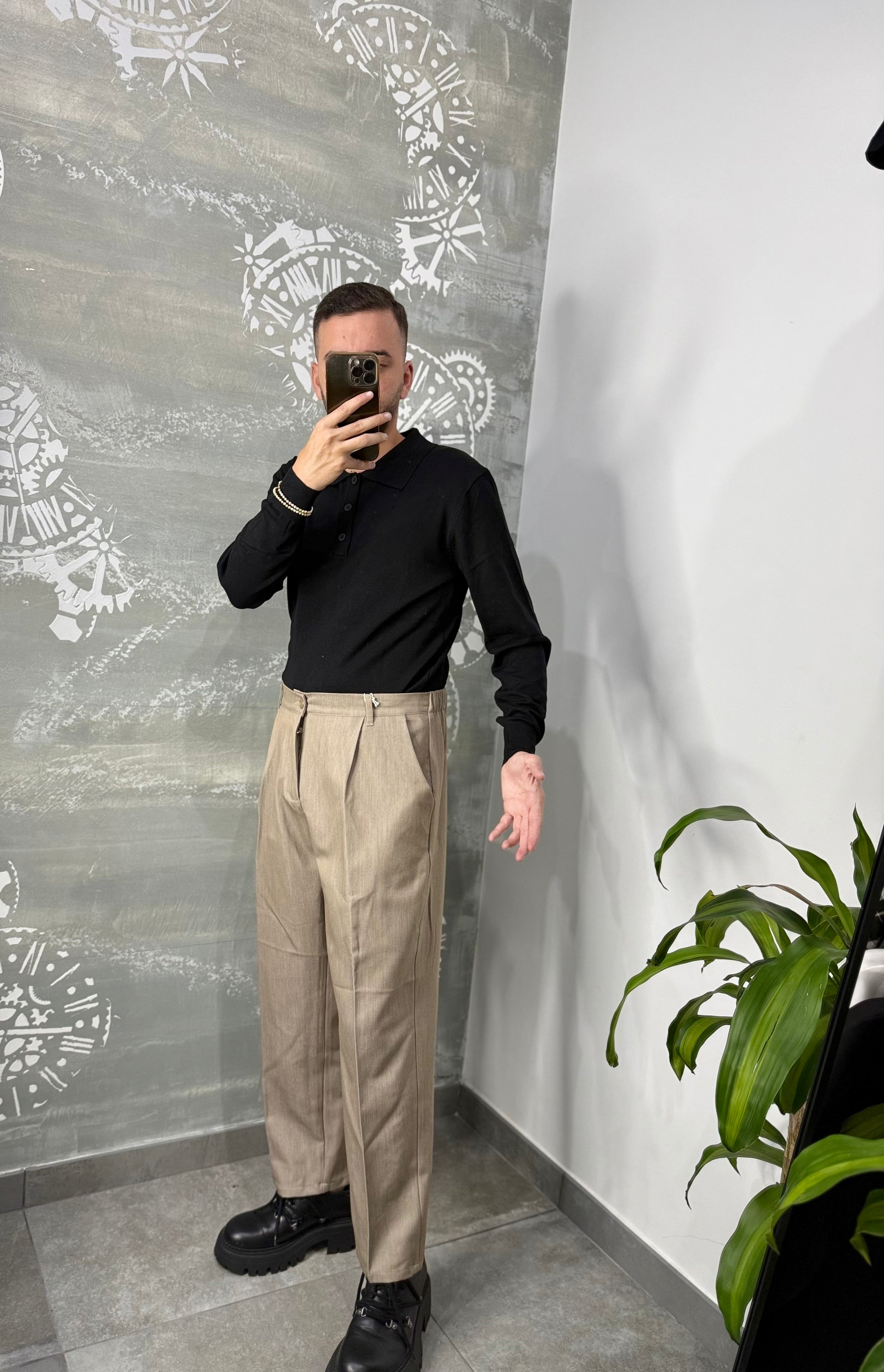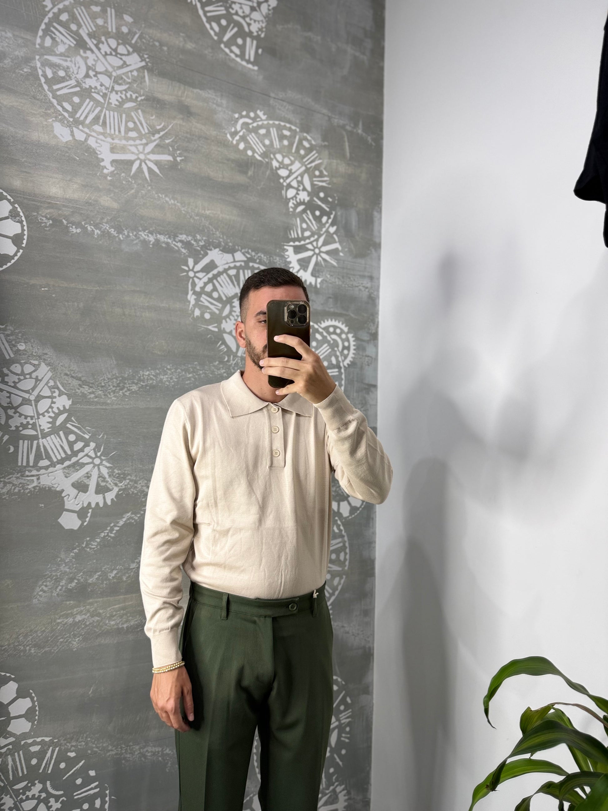 Polo in filo maniche lunghe chiusura 3 bottoni e con molla sui polsini e sul fondo.