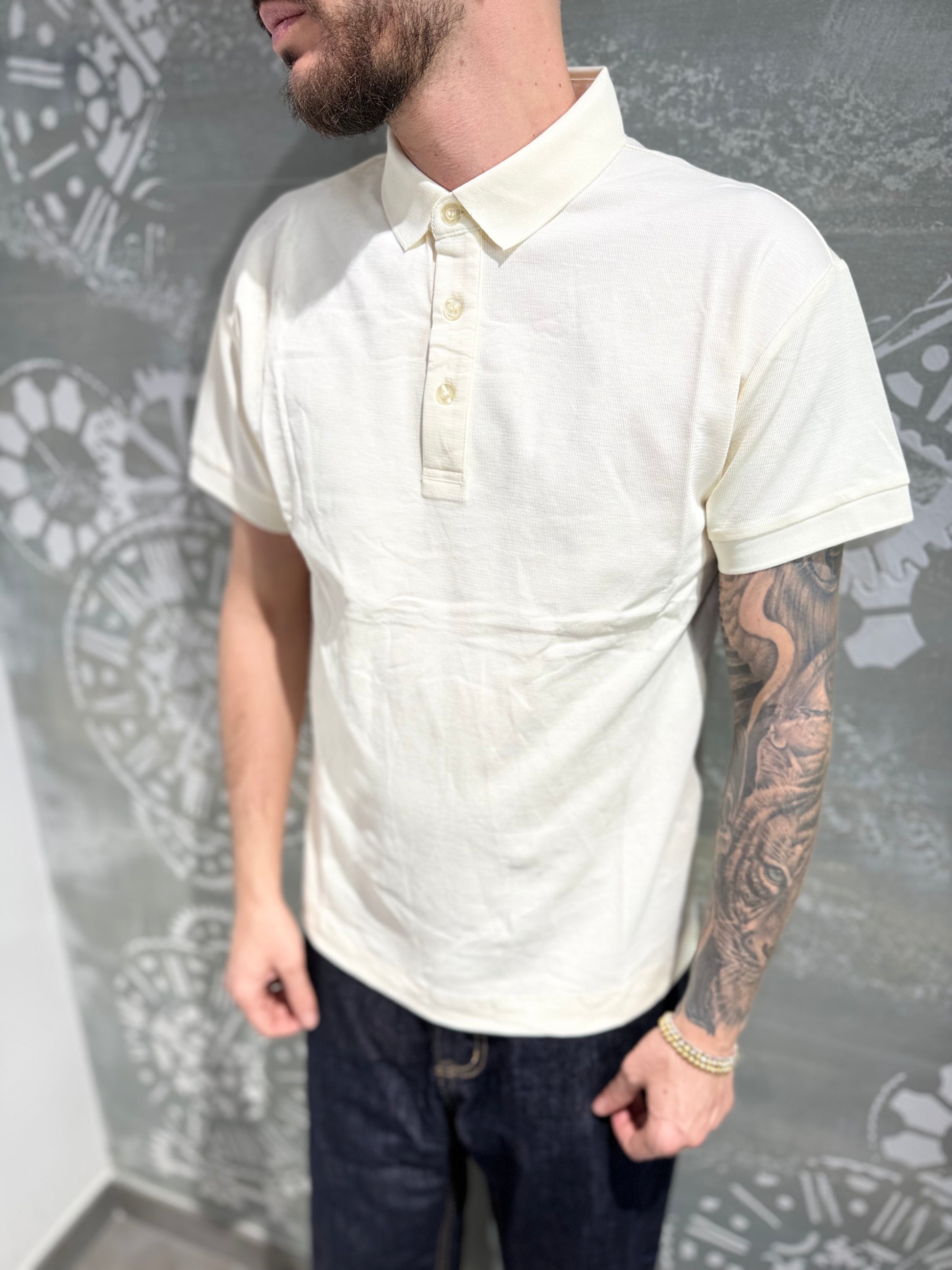Polo mezza manica chiusura 4 bottoni in tessuto premium.