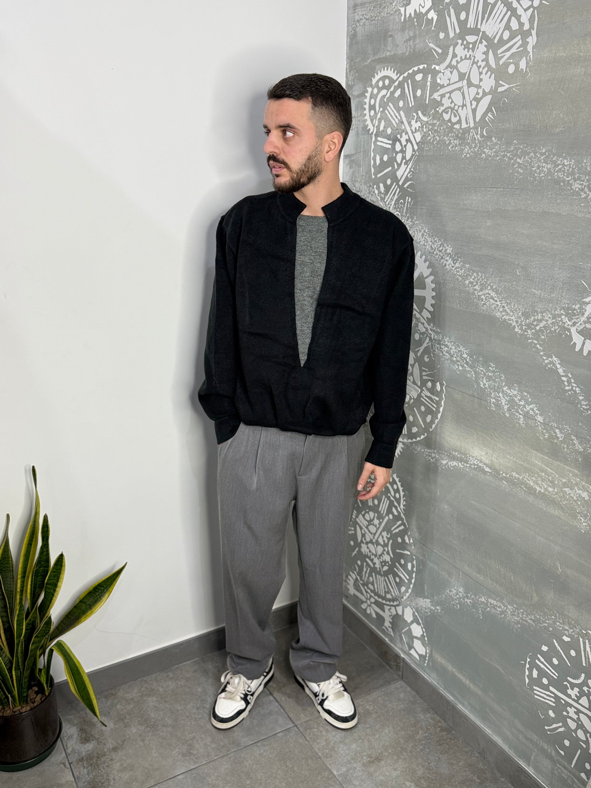 Doppio maglione con collo alto e spacco profondo e molla sul fondo, In misto lana.