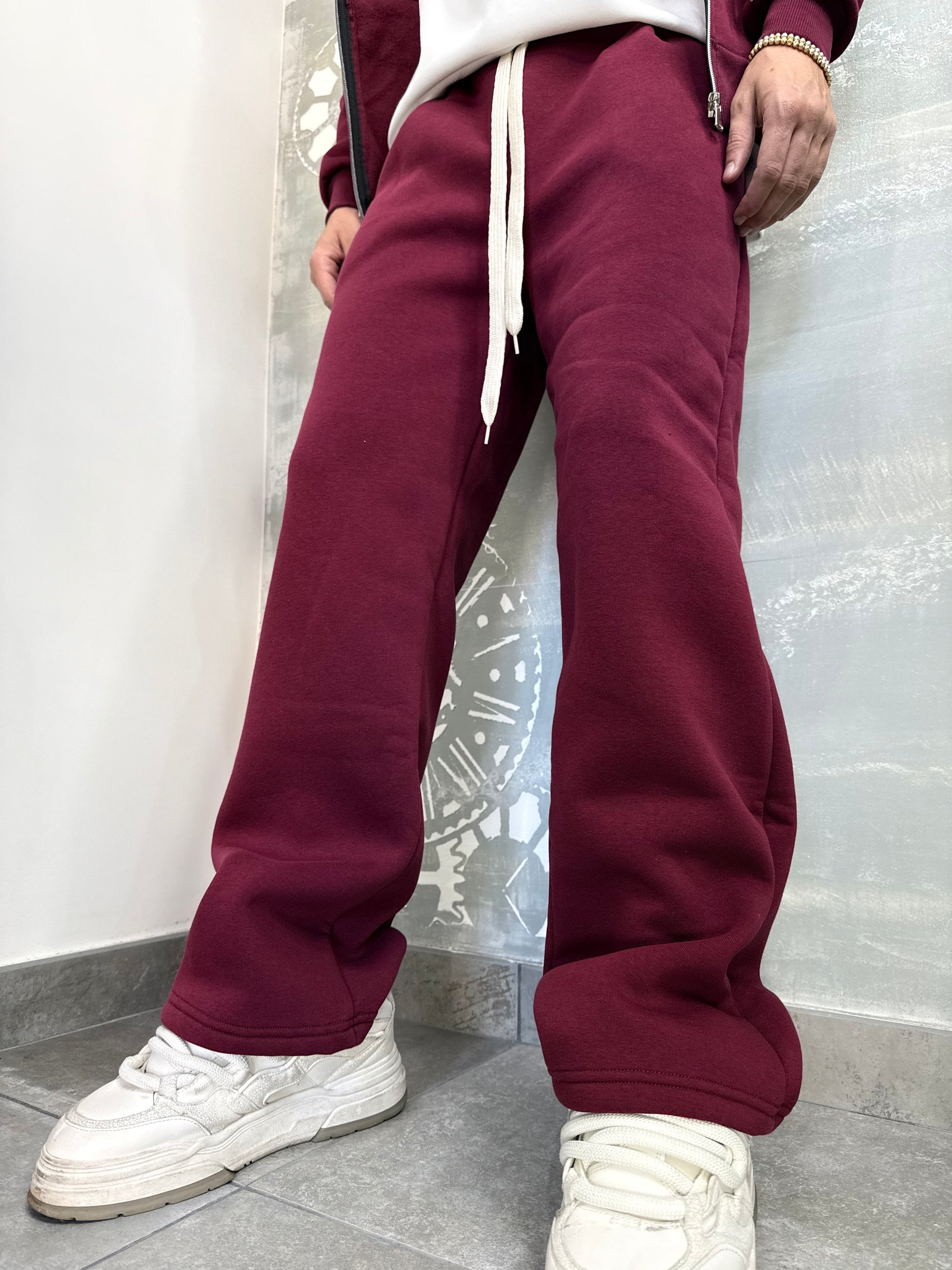 Tuta felpata con cappuccio e chiusura con zip, fondo ampio.